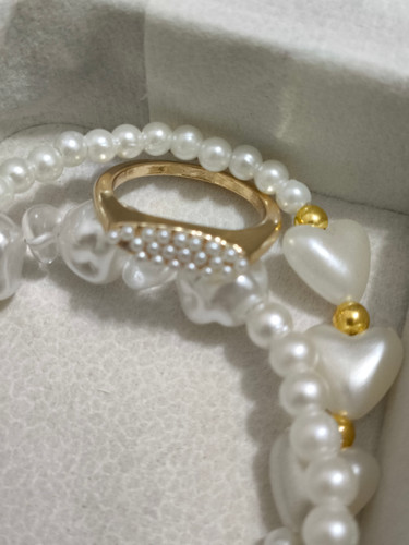 انگشتر استیل طرح مینیمال مروارید ریز روکش طلا