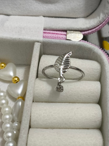 انگشتر استیل ظریف طرح برگ نگین دار روکش نقره