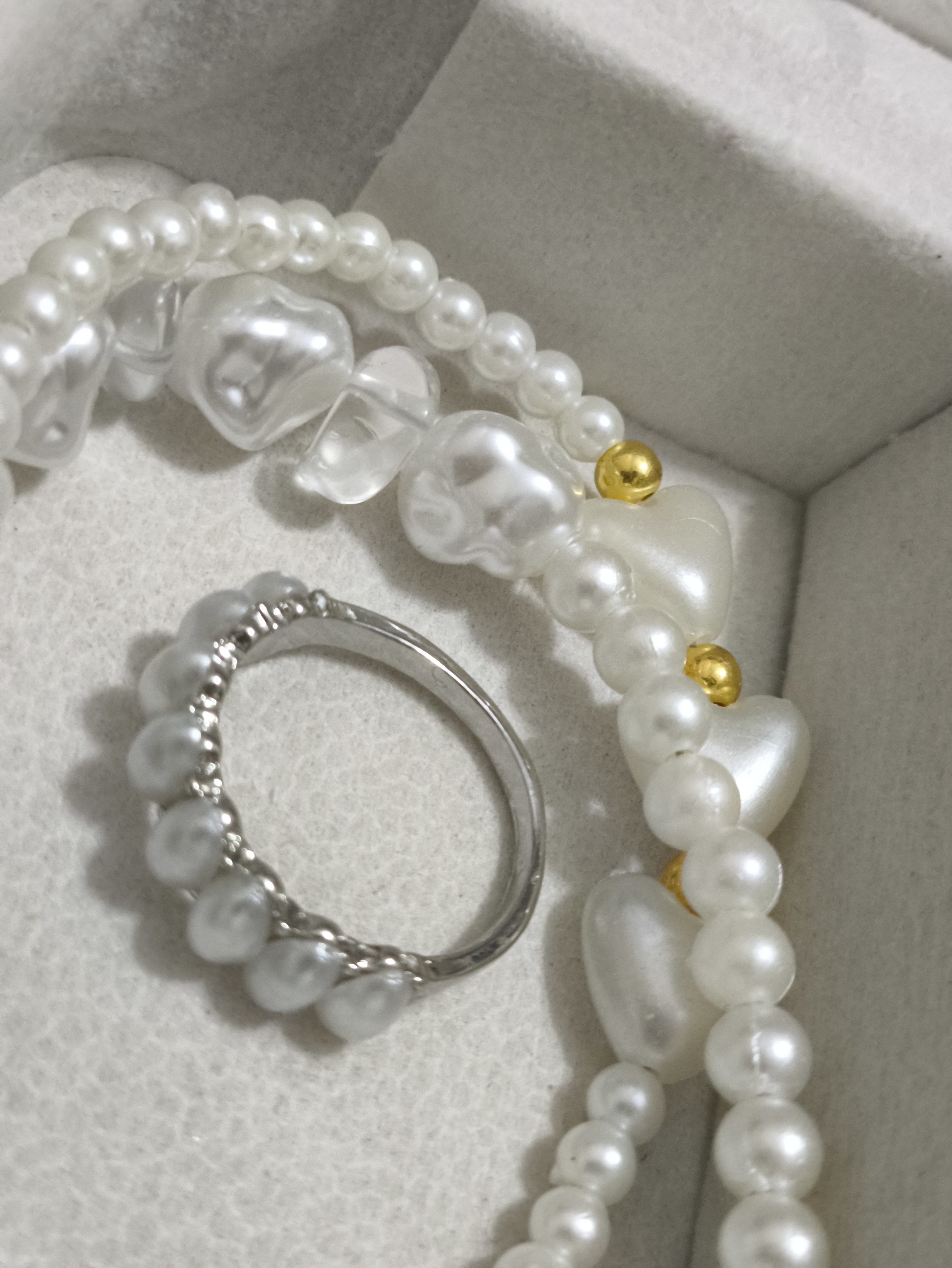 انگشتر استیل طرح مینیمال مروارید ریز روکش طلا