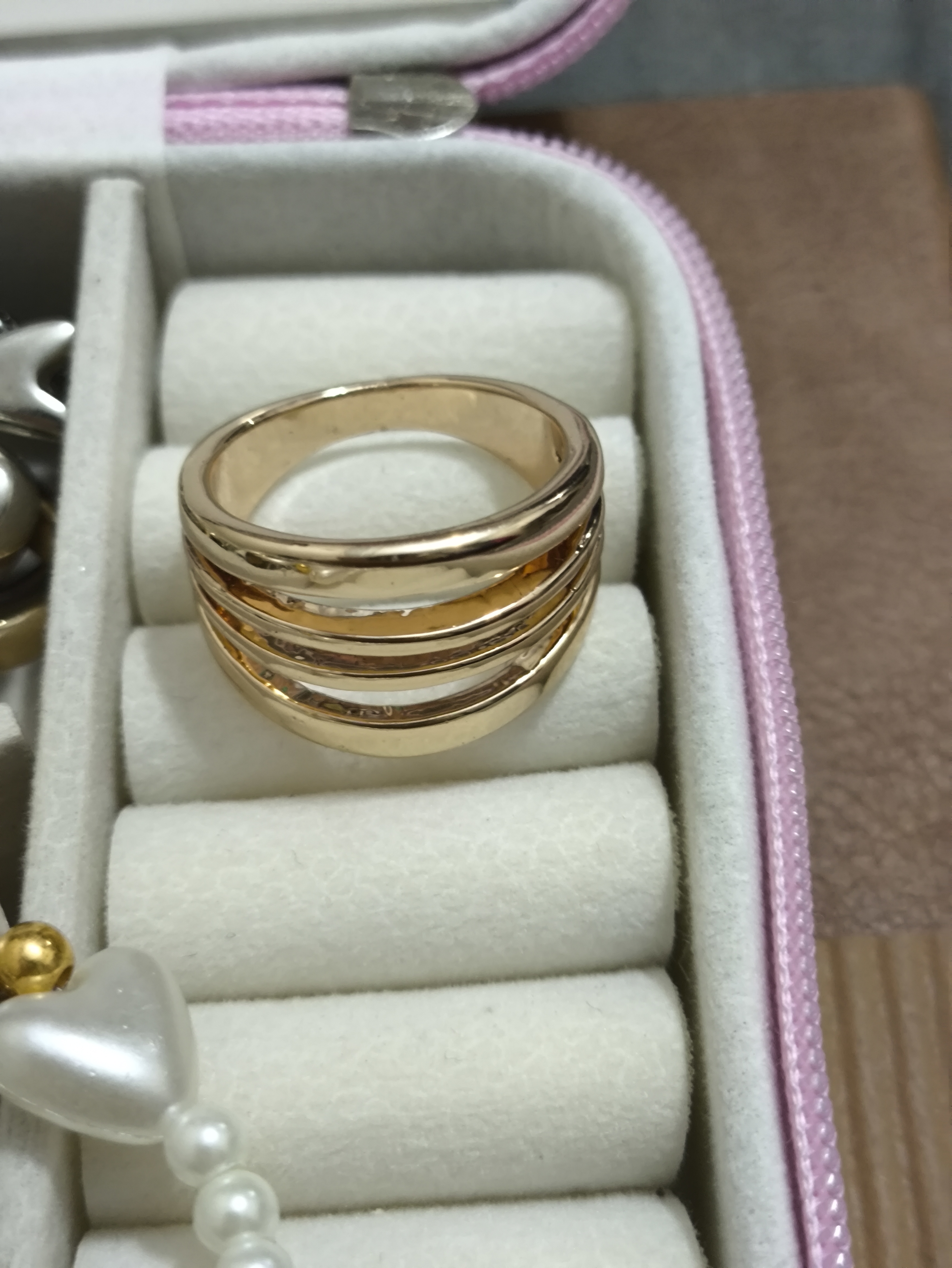 انگشتر استیل طرح سه ردیفه روکش طلا