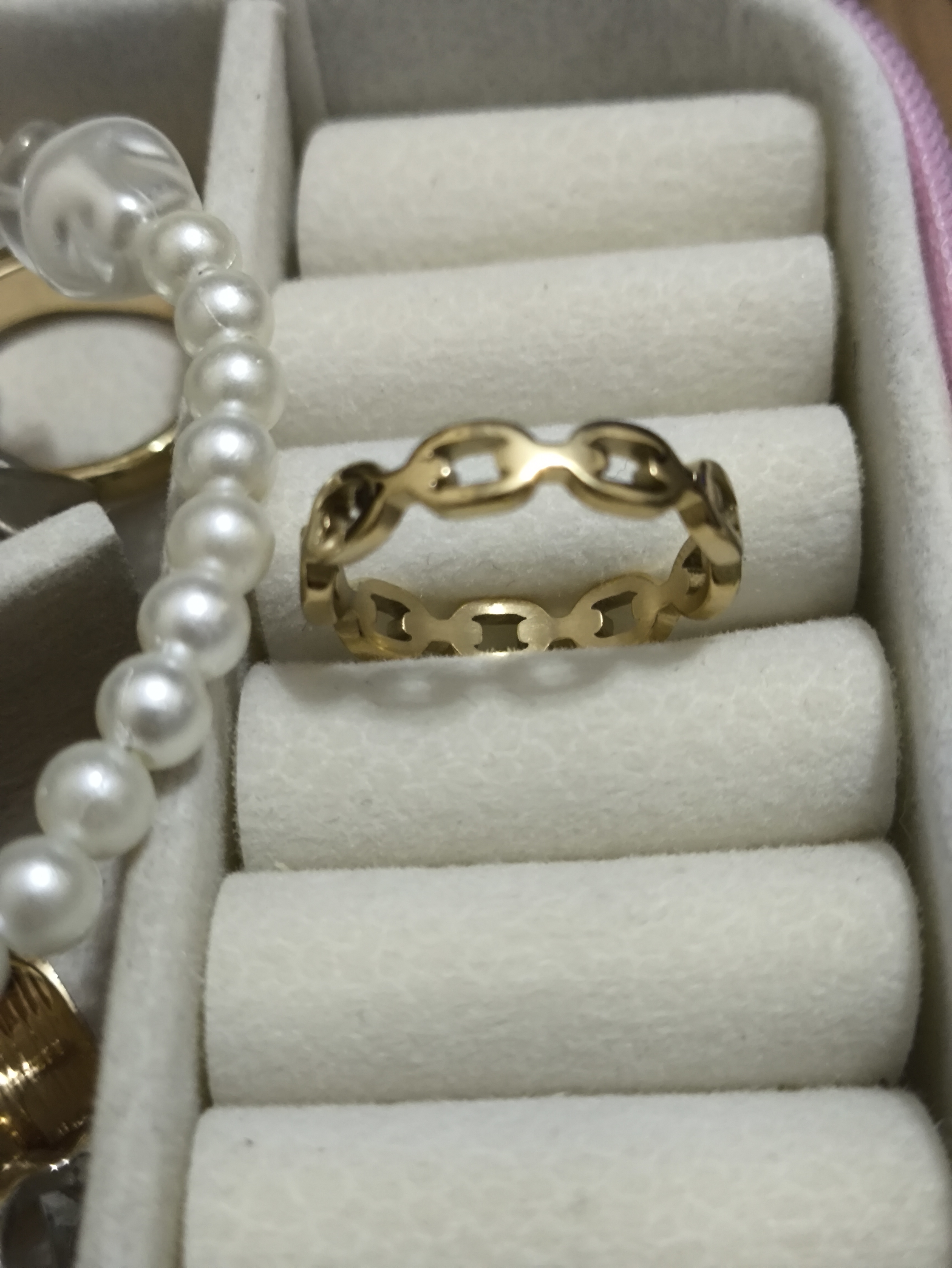 انگشتر استیل ظریف طرح زنجیر کوچک روکش طلا