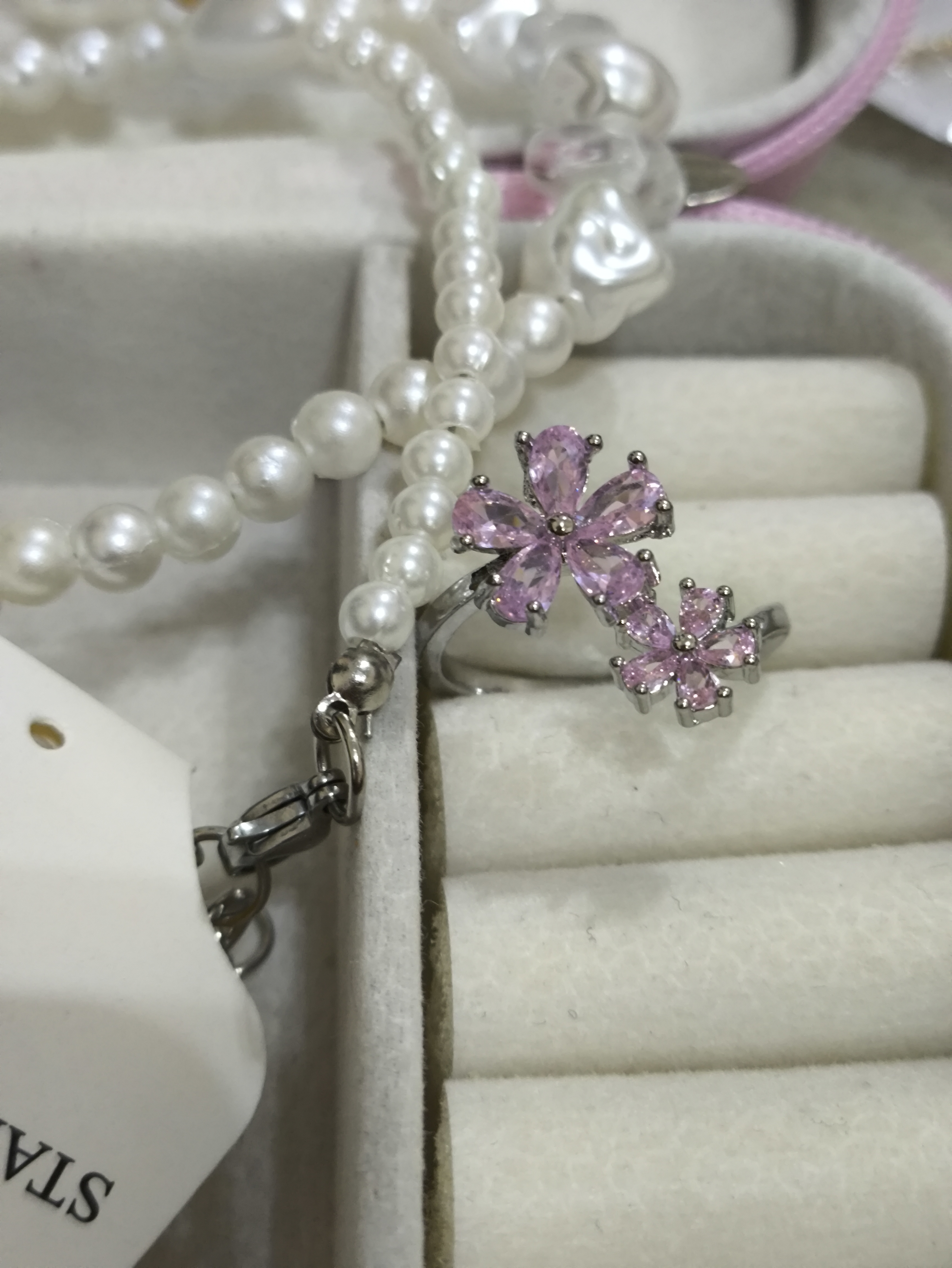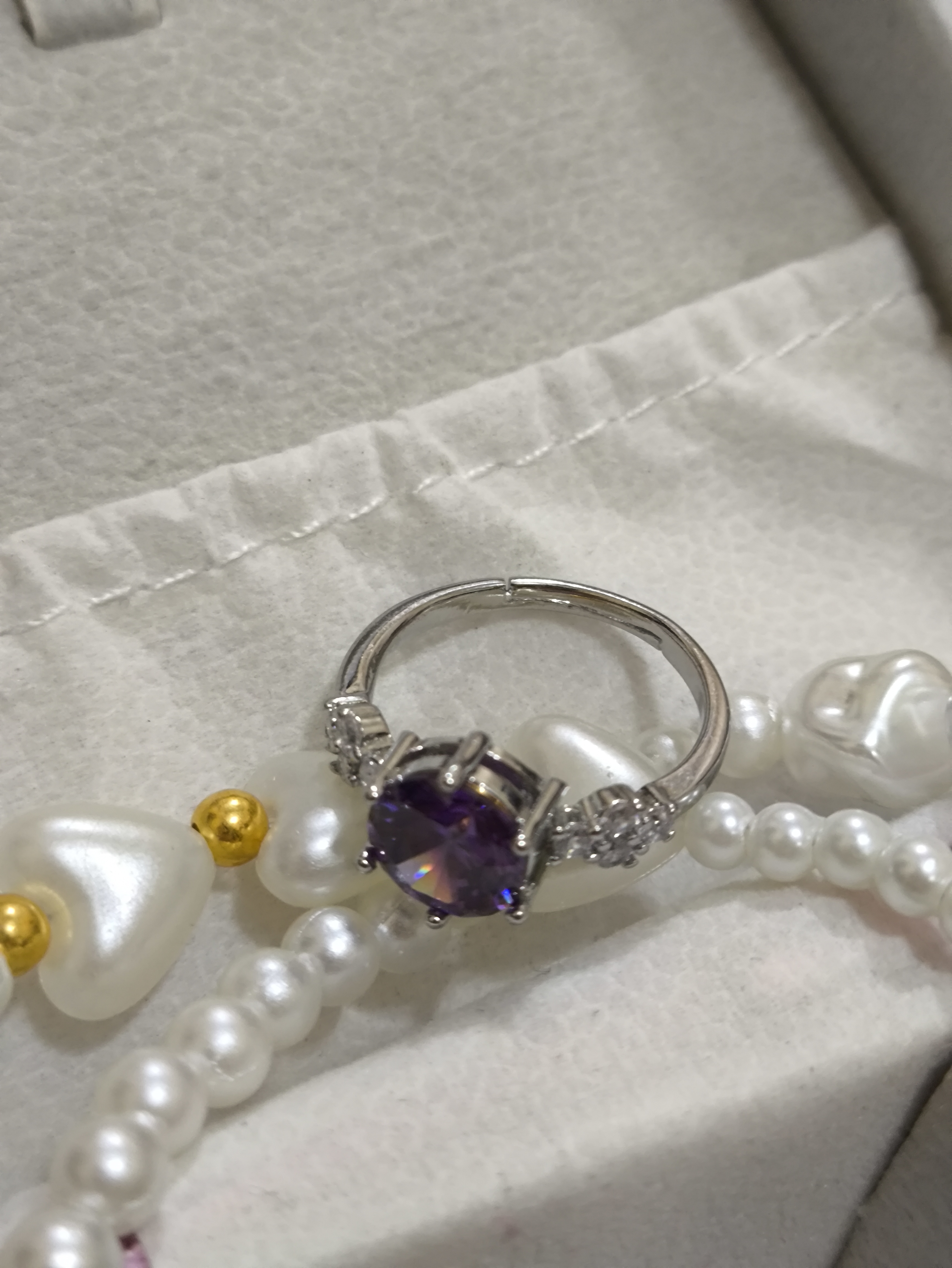 انگشتر استیل طرح مروارید متوسط روکش نقره