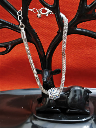 دستبند استیل روکش نقره نگین کاری شده کد 120