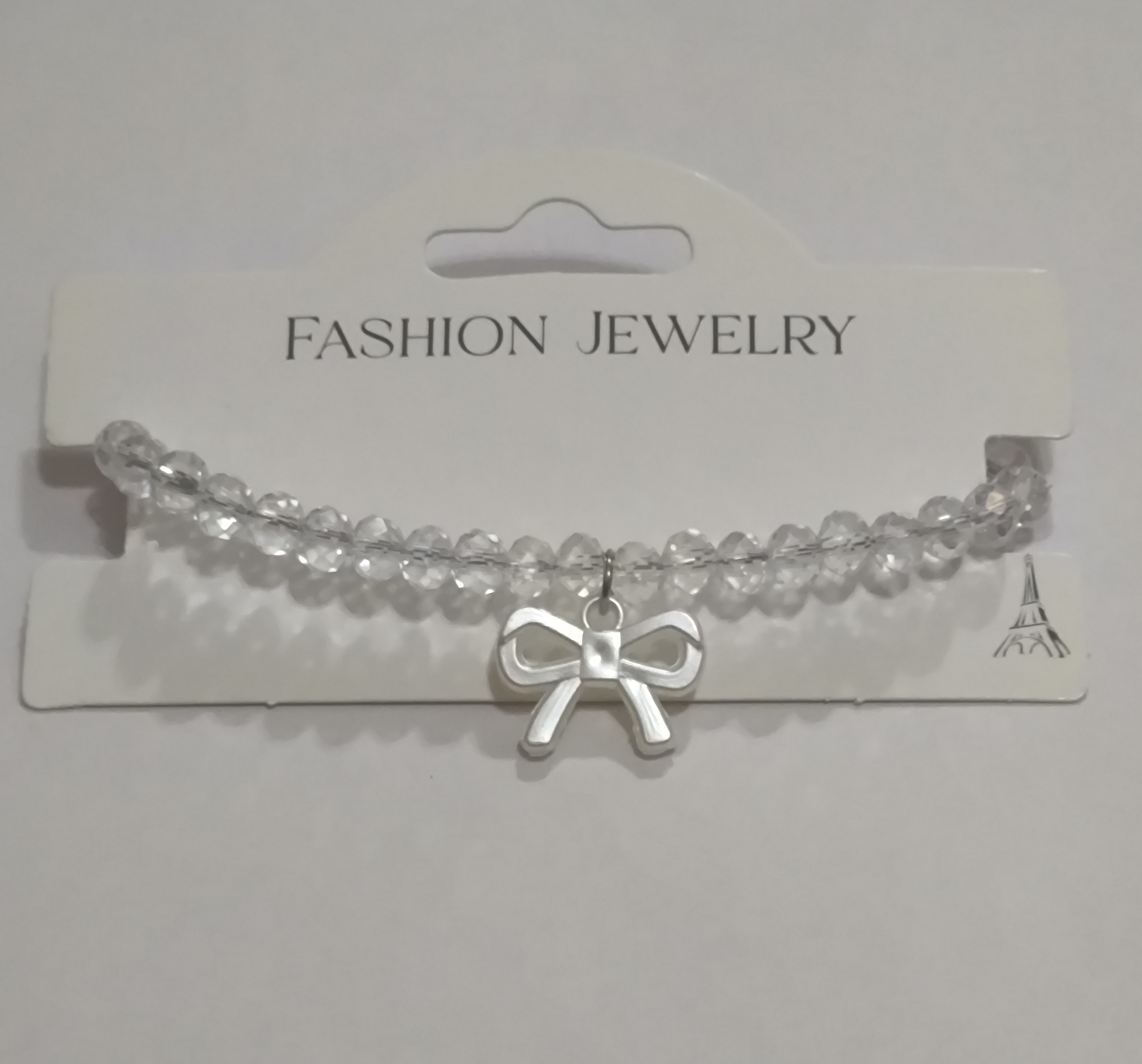 دستبند ترکیبی چارم پاپیون و مهره کریستالی کد ۱۵