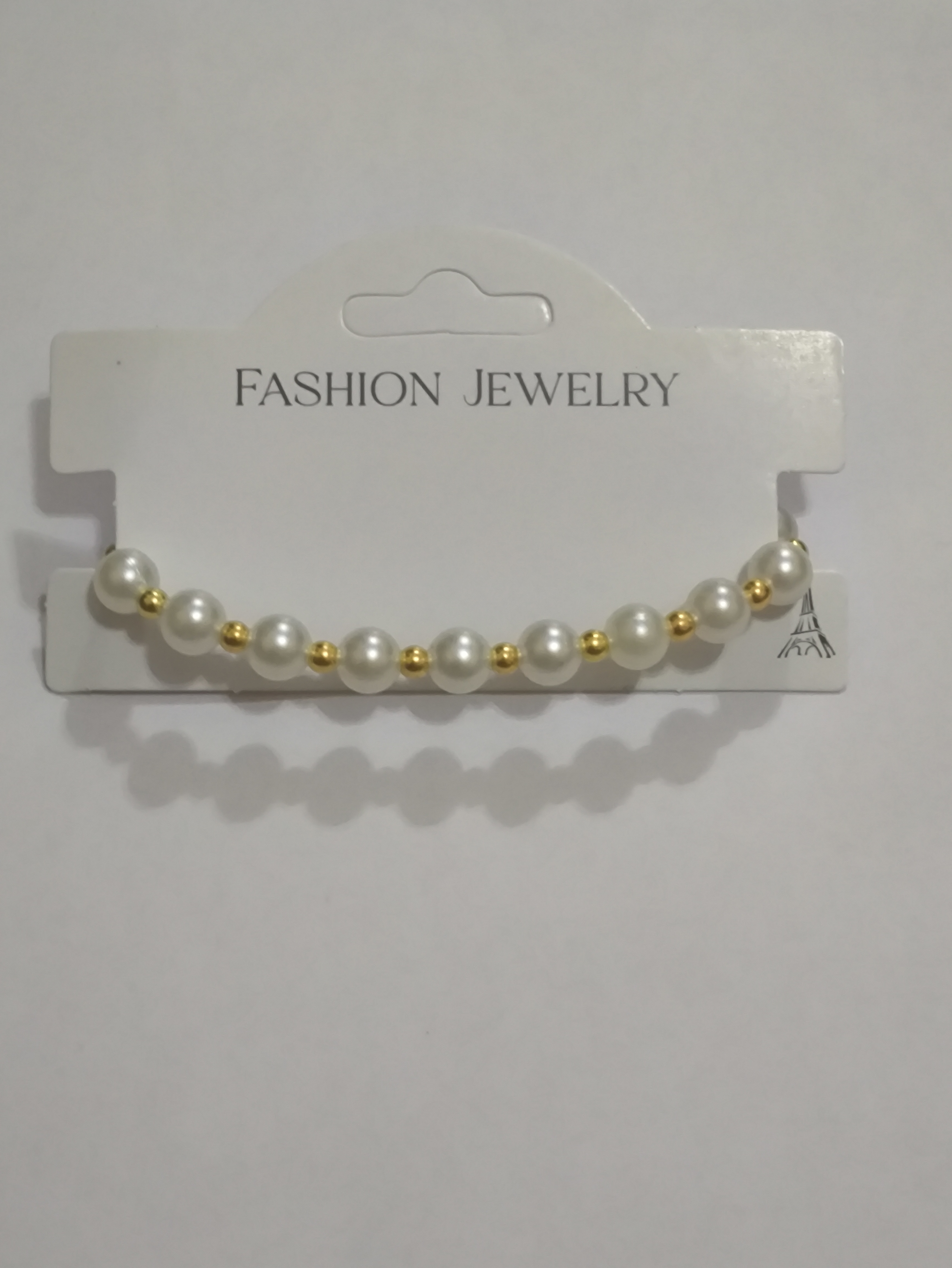 دستبند ترکیبی مهره طلایی و مروارید کد ۱۶