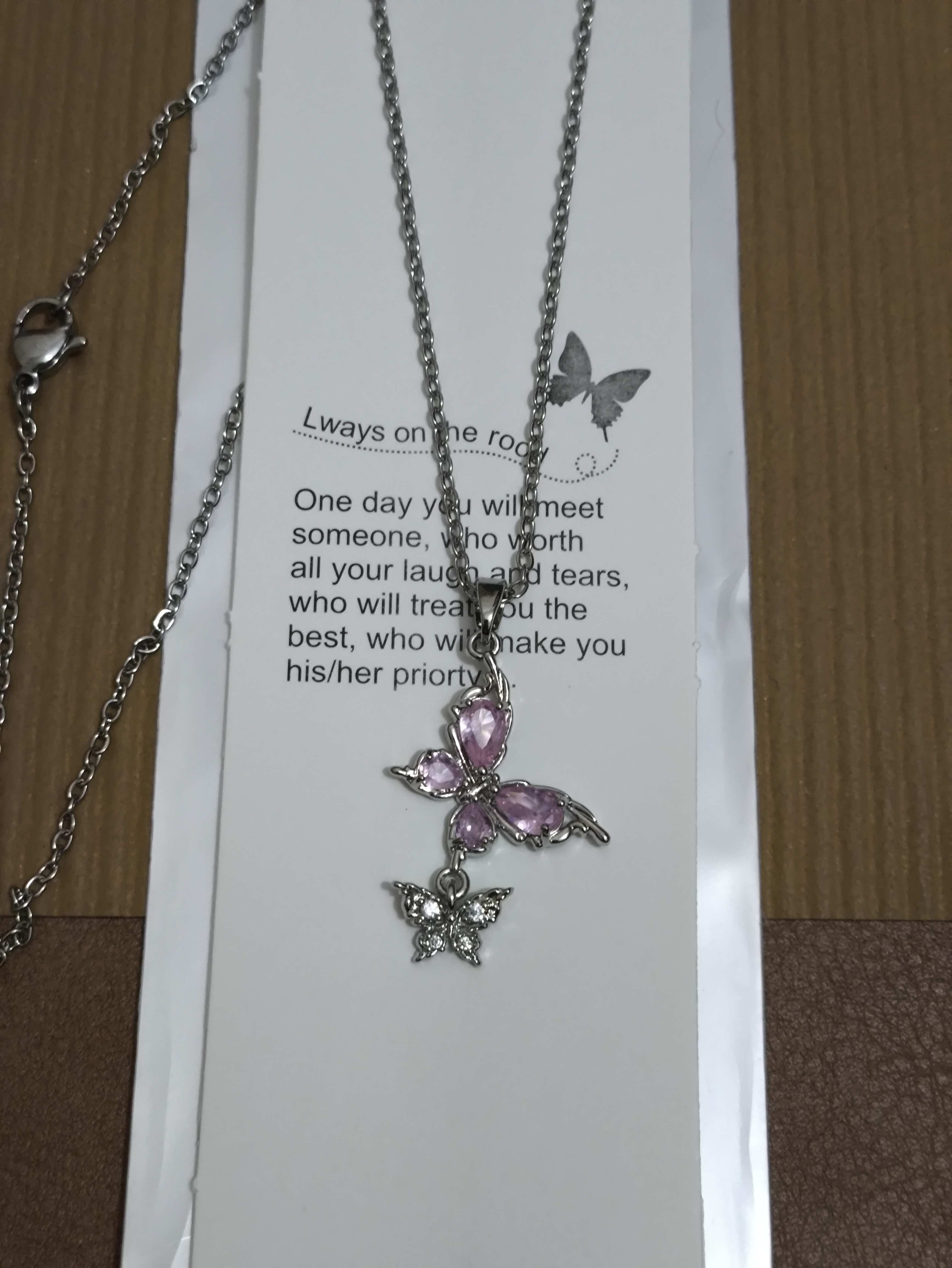 گردنبند جواهری روکش نقره طرح پروانه آویز دار