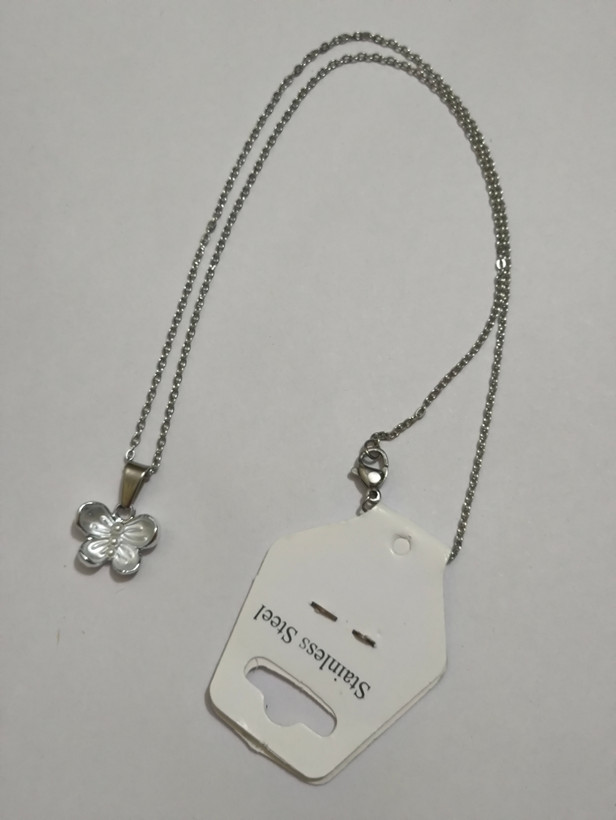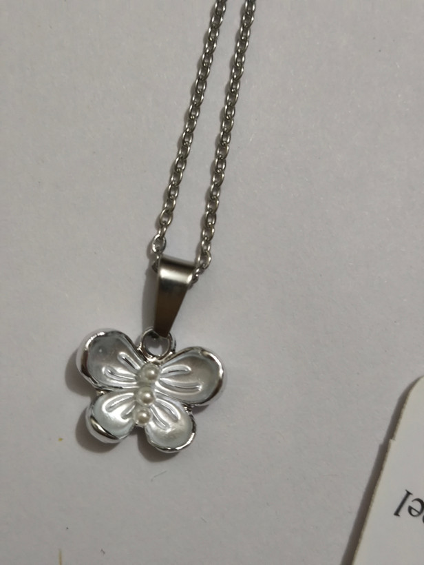 گردنبند جواهری روکش نقره طرح پروانه و مروارید