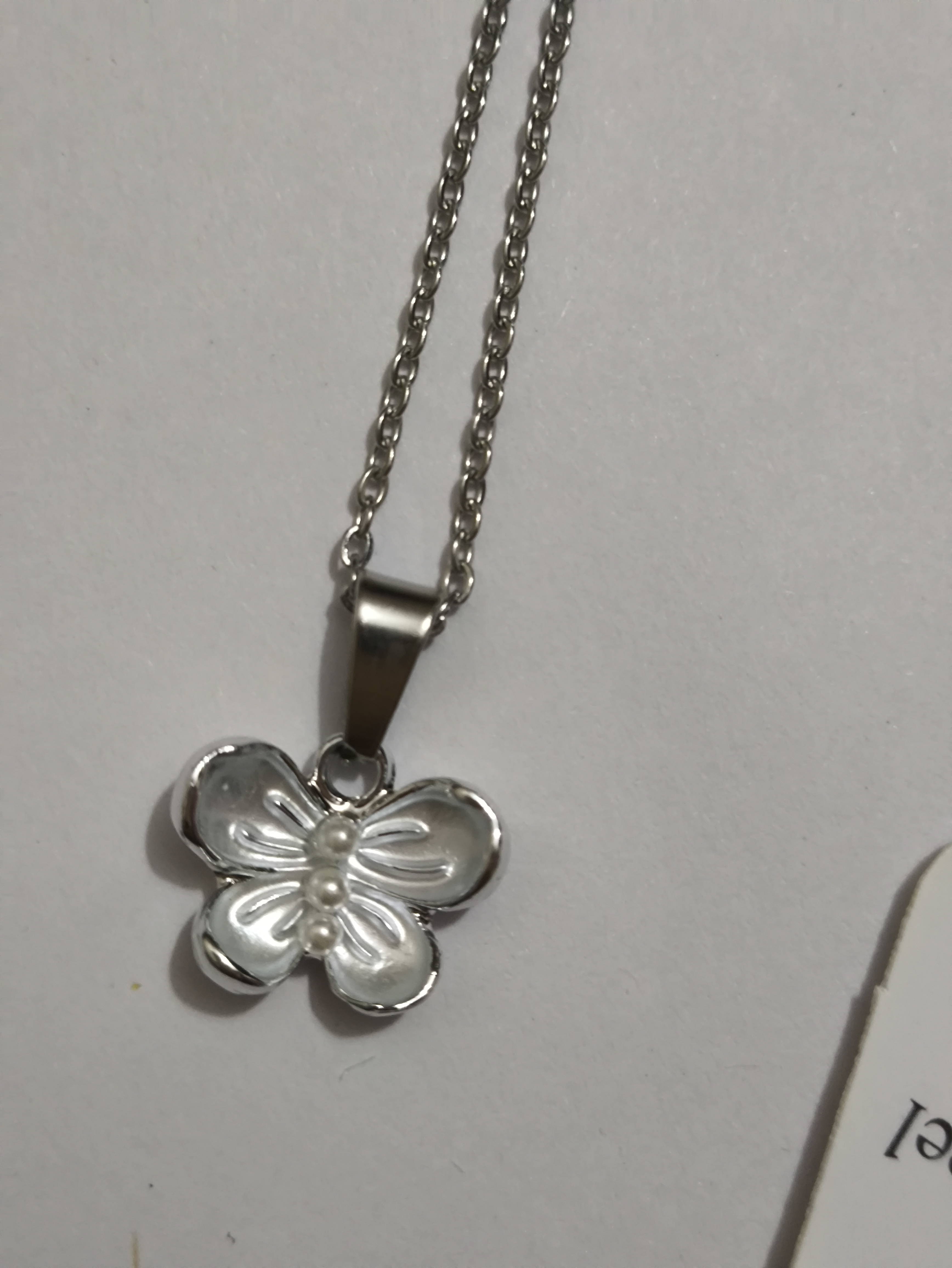 گردنبند جواهری روکش نقره طرح پروانه و مروارید