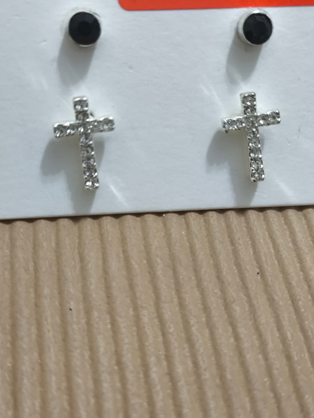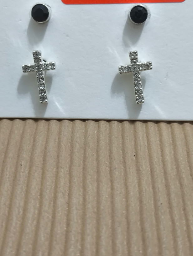 پک گوشواره استیل طرح صلیب روکش نقره