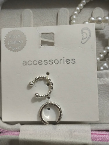 گوشواره استیل طرح هلال مرواریدی روکش نقره
